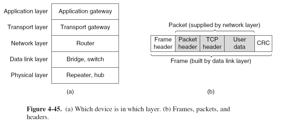 - Transportation layer and above layer device: gateway